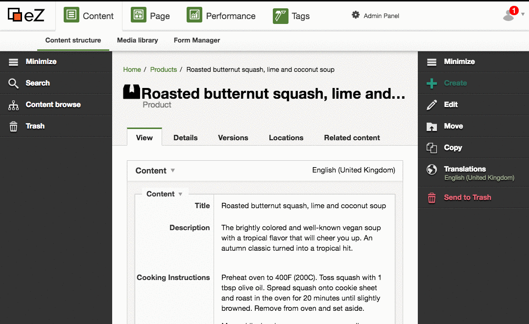 In version 1.8 we introduced a new Content Browser in the Universal Discovery Widget (UDW). This Content Browser is now used to browse content everywhere, also when accessing the content tree through the left pane in Platform UI. This allows users to reach the entire repository from this toolbar (which was previously limited in terms of number of items per level), it also provides a much more consistent user experience. To reflect this change, the Content tree button has been renamed Content browse.